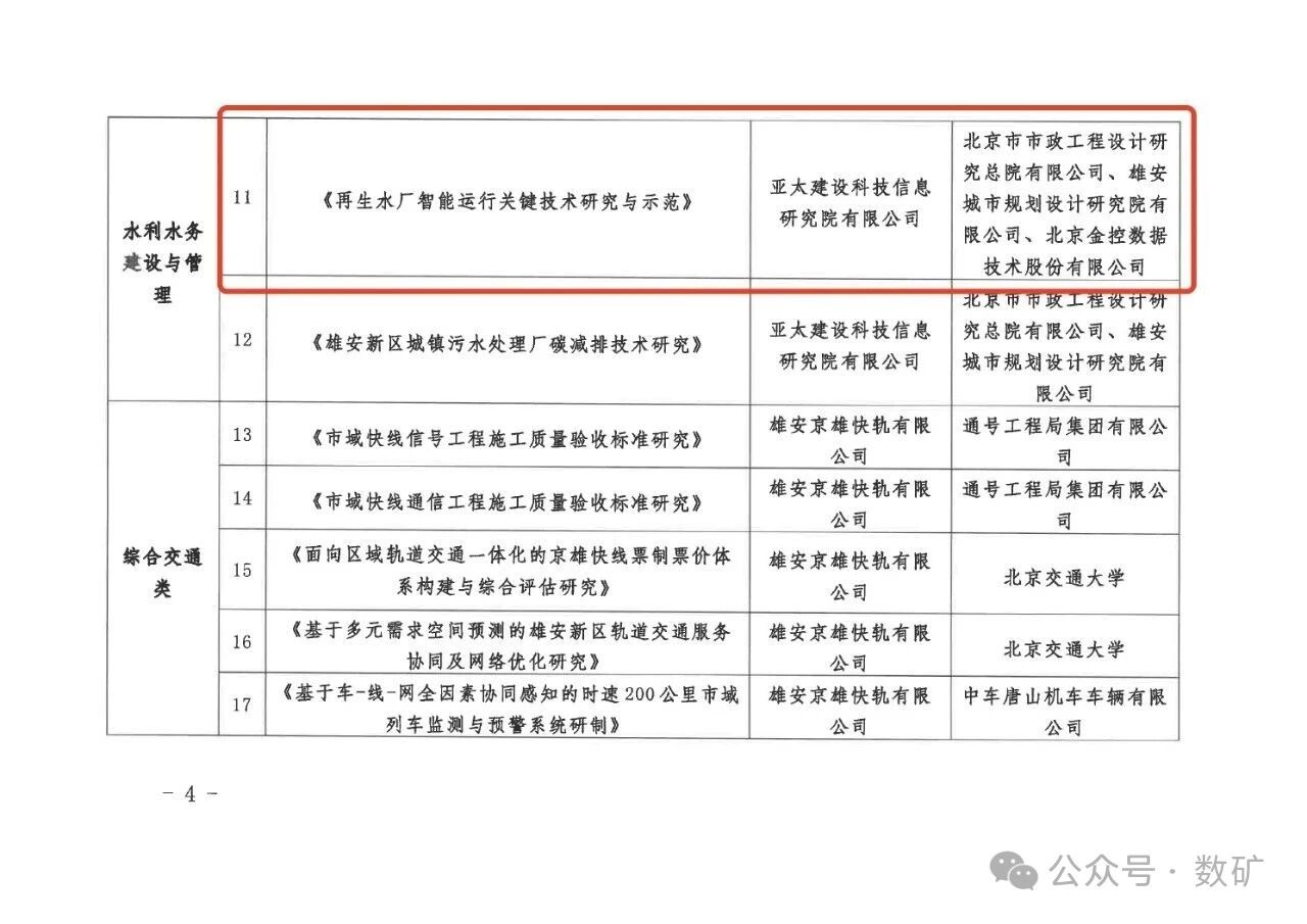 近日,河北雄安新區(qū)建設(shè)和交通管理局正式下達(dá)《2025年雄安新區(qū)建設(shè)科技計(jì)劃項(xiàng)目的通知》。金控?cái)?shù)據(jù)作為核心合作單位,榮幸參與其中“水利水務(wù)建設(shè)與管理”領(lǐng)域的重點(diǎn)項(xiàng)目——《再生水廠智能運(yùn)行關(guān)鍵技術(shù)研究與示范》。